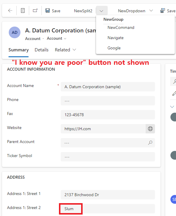This function checks the input of "Address 1: Street 2" and button is shown when the street data is not "Slum"