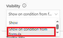 #2. On the button property, change visibility option to "Show on condition from formula"