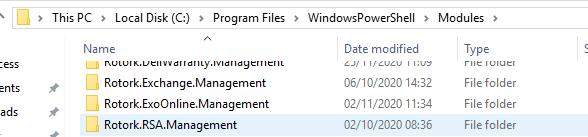 - Open "Rotork.Exchange.Management" folder and open "Rotork.Exchange.Management.psm1"
