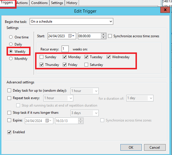 At last but not least, create task scheduler to run it daily. In general tab, fill out description and select "Run whether user is loggedon or not"
